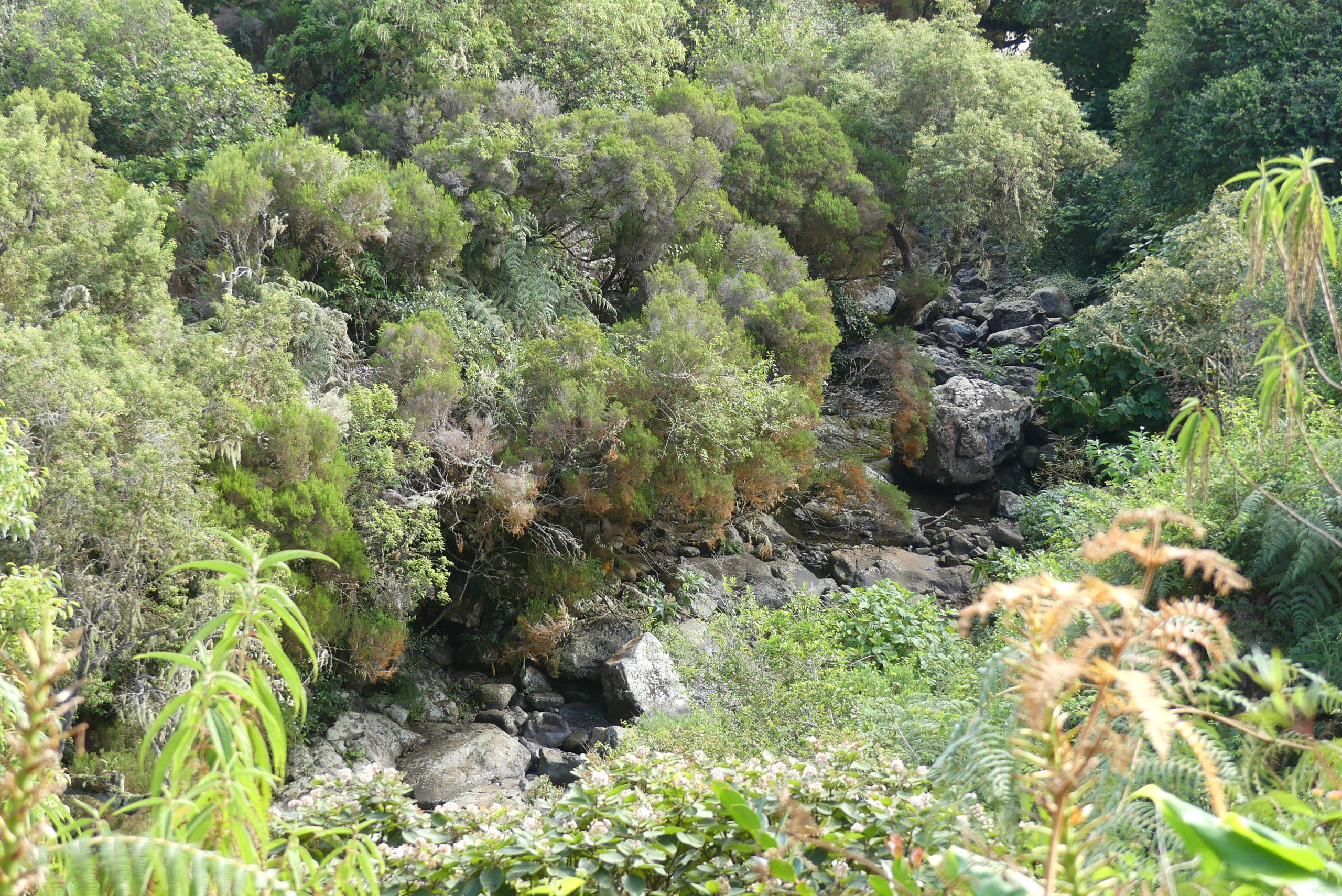 - Vue sur la Ravine bras de Jeanne depuis la route forestière menant au Maïdo.